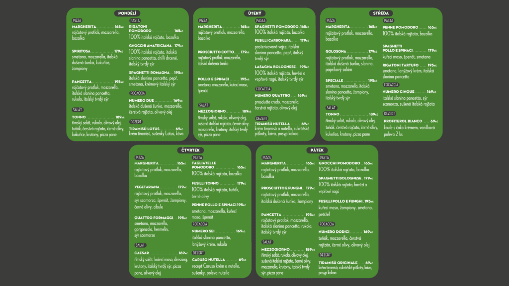 Obědové menu od 20.04. – 24.04.2026. +420284860000 prahaletnany@carusofood.cz www.carusorestaurant.cz Detail obchodu